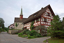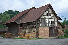 During the Middle Ages, the number of farms decreased from 40 in 1328 to only 16 in 1433, only to double again from 1470 to 1550. After that village population, land use and number of farms remained stable until 1800. In 1800, the number of farms rose sharply. Large forests also favored the expansion of the woodworking industry. In 1900 an embroidery factory and a brickyard offered some jobs, but the village retained a strong farming village character until around 1970. Since then agricultural amelioration (mostly, relocation of fruit orchards) and a strong population growth has led to changes in the appearance and character of the village.[4]