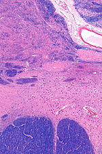 The nucleus basalis, also known as the nucleus basalis of Meynert or nucleus basalis magnocellularis, is a group of neurons located mainly in the substantia innominata of the basal forebrain.[1] Most neurons of the nucleus basalis are rich in the neurotransmitter acetylcholine, and they have widespread projections to the neocortex and other brain structures.[2]