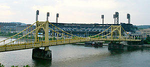 - PNC Park (Pittsburgh Pirates) – The park was built on the Allegheny River, and its low walls behind the outfield seats allow for a stunning view of the river and skyline of downtown Pittsburgh that rests on the other side. Located directly outside the park is the Roberto Clemente Bridge, named in honor of the Pirates legend, which is closed to traffic during games and serves as a pedestrian bridge.