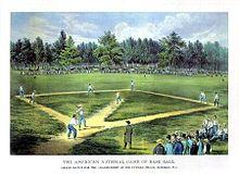 Baseball was originally played in open fields or public parks. The genesis of modern baseball is conventionally connected with Elysian Fields in Hoboken, New Jersey, a large public park where the businessmen of New York City gathered from time to time to play organized baseball games and cricket matches, starting around the mid-1840s. The name "Field" or "Park" was typically attached to the names of the early ballparks.