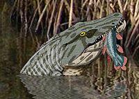 | Hannah Pit, Newsham, England | A species of giant eogyrinid embolomere, at over 4,5 meters long it was one of the largest carboniferous tetrapods. Originally described as Eogyrinus attheyi, the type species of that genus, it was later subsumed into Pholiderpeton though, according to even later research, it might had not been closely related to the type species of its current genus. | ||