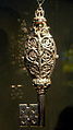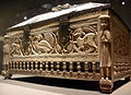 Since the donation of a silver reliquary in the shape of a Roman triumphal arch by Charlemagne's biographer Einhard in c. 830, the church has acquired many treasures, most of which are now kept in the Treasury. Amongst the highlights are the reliquary shrine and the reliquary bust of Saint Servatius, the key, the cup, the crozier and the pectoral cross of Saint Servatius, a large patriarchal cross, and many other reliquaries and liturgical vessels, as well as an important collection of medieval ivories and textiles.