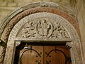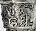 Both the exterior of the East choir and the interior of the westwork of Saint Servatius contain architectural sculpture that is considered amongst the most interesting in the Mosan region.[5] The 34 elaborately carved capitals in the Westwork depict scenes from books well-known to the canons, such as Saint Augustine's De Civitate Dei and various bestiaries. Recurrent themes are: botanical ornaments, animals, humans fighting with animals, humans entangled in plants, and humans engaged in daily activities. A close relationship has been established by art historians between the Maastricht Westwork capitals and those of the East choir of Our Lady's in Maastricht, the Rolduc crypt, the dwarf gallery of the Doppelkirche Schwarzrheindorf (Bonn), and the Wartburg palace (near Eisenach).[6]