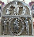 Also in the Westwork of Saint Servatius is a sculpted Romanesque choir screen, also referred to as the double relief. The lower rectangular part depicts the Virgin and Child in a mandorla held by two angels, the upper part shows Christ handing over the keys of Heaven to Saint Peter and Saint Servatius. The relief closely relates to a choir screen in Saint Peter's in Utrecht. Elsewhere in the church a 12th-century tympanum depicting the Majestas Domini can be found as part of a former portal. The choir ceiling shows remnants of ceiling paintings, depicting the visions of Zechariah. This may be the only surviving work by a once important group of Maastricht and Cologne based painters, who received high praise from Wolfram von Eschenbach in his Parzival.