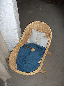 A bassinet, bassinette, or cradle is a bed specifically for babies from birth to about four months. Bassinets are generally designed to work with fixed legs or casters, while cradles are generally designed to provide a rocking or gliding motion. Bassinets and cradles are distinguished from Moses baskets and carry cots, which are designed to be carried and sit directly on the floor or furniture. After four months, babies are often transferred to a crib (North American usage) or cot (UK usage). In the United States, however, the bedside sleeper is the prevalent option, since they are generally bigger, recommended up to 6 months, and often used up to a year.