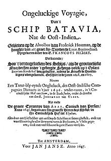 - 1647 – Commander Pelsaert died the year after the event, leaving behind his journal of the events. This journal, together with the pamphlet Ongeluckige voyagie van 't schip Batavia (The Unlucky Voyage of the Vessel Batavia), published in 1647, made it possible to rediscover the wreck.
