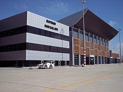 Another popular sport is wrestling. Freestyle wrestlers from Batman have won national competitions, and Ali Riza Alan won gold in 1970 and silver in 1974 in world championships in the weight category under 52 kg (115 lb).[38] The major sport venue of Batman, Atatürk Sports Hall, can accommodate 1,000 spectators and supports many athletics, such as badminton, basketball, gymnastics, wrestling, folk dance, handball, martial arts (such as kurash, judo, aikido, wushu, karate and taekwondo), table tennis, volleyball and swimming.[39]