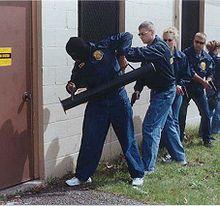 Battering rams still have a use in modern times. SWAT teams and other police forces often employ small, one-man or two-man metal rams for forcing open locked portals or effecting a door breaching. Modern battering rams sometimes incorporate a cylinder, along the length of which a piston fires automatically upon striking a hard object, thus enhancing the momentum of the impact significantly.[7]
