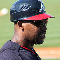 In 1983, it was made mandatory for new players to use a helmet with at least one earflap.[16] Players who were grandfathered in could choose to wear a helmet without ear flaps, if they so desired. Players can choose to wear double earflap helmets in the major leagues; however, this is not mandatory. Tim Raines was the last player to wear a helmet without earflaps, during the 2002 season. His flap-less Florida Marlins helmet is currently at the Baseball Hall of Fame. Gary Gaetti, who retired in the year 2000, plus Ozzie Smith and Tim Wallach, who both retired in 1996, also wore flapless helmets until they retired.[17] Julio Franco, who retired from baseball in May 2008, was the last active player eligible to wear a helmet without flaps, but he chose to wear a helmet with an earflap throughout his career. Some players, mostly switch hitters, also decide to wear double earflap helmets while batting. Players to do this include Willie McGee, Terry Pendleton, Vince Coleman, Chuck Knoblauch, Shane Victorino, Orlando Hudson, Trot Nixon, and Jed Lowrie (all of which are switch hitters).[18]