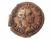 D. S. Potter rejects the story of Zosimus[31] about Treboniannus Gallus who supposedly conspired with the enemies of Romans for delivering Decius' army into the Gothic trap since it seems impossible that, afterwards, the shattered Roman legions proclaimed emperor a traitor who was responsible for the loss of so many soldiers from their ranks. Another strong point against Gallus' treason is the fact that he adopted Hostilian, the younger son of Decius, after returning to Rome.[27][32]