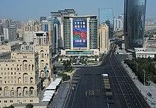 The 100th anniversary of Liberation of Baku (Azerbaijani: Bakının azad edilməsinin 100 illiyi) celebrated the centennial anniversary of the liberation of the city from Armenian-Bolshevik forces.[33] The anniversary was celebrated with a military parade on 15 September 2018 at Azadliq Square, with Turkish President Recep Tayyip Erdoğan and Azerbaijani President Ilham Aliyev being the guests of honor.[34] The parade of the Baku garrison included cadets of Azerbaijani military academies, the Internal Troops, troops of the Land Forces, Air Force, Navy, the State Border Service, the National Guard and a unit of the Turkish Armed Forces.[35][36][37] The Turkish Air Force dedicated a video which was published on Twitter to the anniversary.[38] A concert was also held in the Heydar Aliyev Center.[39]