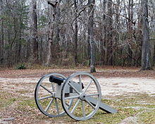 The site at which Ashe made his camp has been criticized by contemporary sources and modern historians. With its back to the creek and swampy lands, its front presented no particular opportunities for defense.[14] Ashe's adjutant, William Bryan recognized some of these problems, and after Ashe left camp on February 28 to attend a war council at Purrysburg, Bryan moved the camp about one mile (1.6 km) north, nearer the Savannah River and a small hill.[13] Ashe returned to the camp on March 2.[15]