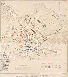 The Battle of the Chernaya (also Tchernaïa; Russian: Сражение у Черной речки, Сражение у реки Черной, literally: Battle of the Black River) was a battle by the Chornaya River fought during the Crimean War on August 16, 1855. The battle was fought between Russian troops and a coalition of French, Sardinian and Ottoman troops. The Chornaya River is on the outskirts of Sevastopol. The battle ended in a Russian retreat and a victory for the French, Sardinians and Turks.