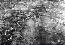 During the fighting at Eliane 1, on the other side of camp, the Viet Minh entrenchments had almost entirely surrounded Huguette 1 and 6. On 11 April the garrison of Huguette 1, supported by artillery from Claudine, launched an attack with the goal of resupplying Huguette 6 with water and ammunition. The attacks were repeated on the nights of the 14–15 and 16–17 April. While they did succeed in getting some supplies through, the French suffered heavy casualties, which convinced Langlais to abandon Huguette 6. Following a failed attempt to link up, on 18 April, the defenders at Huguette 6 made a daring break out, but only a few managed to make it to French lines.[81][82] The Viet Minh repeated the isolation and probing attacks against Huguette 1, and overran the fort on the morning of 22 April. After this key advance, the Viet Minh took control of more than 90 percent of the airfield, making accurate French parachute drops impossible.[83] This caused the landing zone to become perilously small, and effectively choked off much needed supplies.[84] A French attack against Huguette 1 later that day was repulsed.[85]