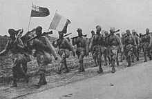 After a delay, a counter-attack began on the south bank and was repulsed, which left the British line south of the canal in a re-entrant. On 29 January, there were two more German attacks which were repulsed by two 2nd Brigade battalions. Another attack on 1 February took a post on the railway embankment, which was recovered by a counter-attack and 32 German troops were taken prisoner. The 2nd Division relieved the 1st Division on 4 February; on 6 February, the 4th (Guards) Brigade crossed no man's land in the dark and then attacked to push forward the line on the flanks. The attack captured the brick stacks and improved the line at the junction with the French.[20][a] German counter-attacks including a deception failed when a group of Germans approached the British line, calling out "Don't shoot, we are engineers!". James Edmonds, the British official historian, called this a legitimate ruse, since an alert defender could be expected to challenge the party and allow only one man to approach.[20]