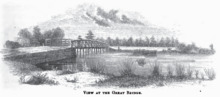 Lord Dunmore had, on arrival in Norfolk, ordered the fortification of the bridge across the Elizabeth River, about 9 miles (14 km) south of Norfolk in the village of Great Bridge. The bridge formed a natural defense point since it was on the only road leading south from Norfolk toward North Carolina, it was bordered on both sides by the Great Dismal Swamp, and the access to the bridge on both sides was via narrow causeways. Dunmore sent 25 men of the 14th Foot to the bridge, where they erected a small stockade fort they called Fort Murray on the Norfolk side of the bridge.[13] They also removed the bridge planking to make crossing it more difficult. The fort was armed with two cannons and several smaller swivel guns. The men of the 14th were augmented by small companies from the Ethiopian and Queen's Own regiments, bringing the garrison size to between 40 and 80 men.[11]
