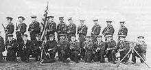 Gloucester was the first ship to set anchor in the Bay of Guánica. Twenty-eight sailors and Marines, under the command of Lieutenants H. P. Huse and Wood, departed from the ship on rafts and landed on the beach. The Marines lowered the Spanish flag from the beach flagpole and replaced it with the American flag. They then proceeded to set up a machine gun nest and placed barbed wire around their perimeter. The first land skirmish in Puerto Rico between the Puerto Rican militia and the American forces occurred when Lt. Méndez López and his men attacked and opened fire on the Americans. During the small battle which followed, the Americans returned fire with their machine gun and Gloucester began to bombard the Spanish position. Lt. Méndez López and three of his men were wounded and the militia unit was forced to retreat to the town of Yauco.[29][30]