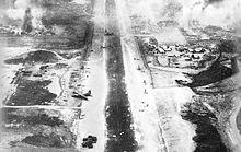 During the ordeal, several forward air-controllers were sent out to make low passes over Khâm Đức to locate the CCT, without success.[2]:59 Then, in response to a call for the nearest aircraft to land on the runway to search for the stranded CCT, Lieutenant Colonel Alfred J. Jeanotte approached the airfield from the south and landed his C-123 on the runway with support from fighter-bombers, which were used to suppress enemy fire.[2]:60 Not seeing the men, Jeanotte applied full power and took off to avoid taking hits from PAVN anti-aircraft fire. As the C-123 rolled past the CCT's position, the three men came out of their position chasing the aircraft with their arms waving. Believing that the aircraft had missed them, the three men ran back to the ditch on the left side of the runway.[3]:346 As the C-123 was airborne, Jeanotte banked his aircraft to the left, and that enabled the aircrew to see the three men running back towards the ditch. However, Jeanotte was deterred from making another attempt at landing, because of low fuel. The next C-123 in line, piloted by Lieutenant Colonel Joe M. Jackson, landed on the runway as fire swept through the camp and the aircrew were able to extract the stranded CCT under heavy fire and they flew out to Đà Nẵng. By 17:00, the evacuation was over.[2]:64 On 13 May, 60 B-52s bombed the Khâm Đức camp.[7]:543
