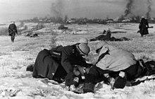 On the Russian side, discipline became ferocious. The NKVD blocking groups were ready to shoot anyone retreating without orders. NKVD squads went to field hospitals in search of soldiers with self-inflicted injuries, the so-called 'self shooters' - Those who shot themselves in the left hand to escape fighting. A surgeon in a field hospital of the Red Army admitted to amputating the hands of boys who tried this 'self-shooting' idea to escape fighting to prevent them from getting shot immediately by punishment squads.[113]In the first three months, blocking detachments shot 1,000 penal troops and sent 24,993 to penal battalions. By October 1942, the idea of regular blocking detachments was quietly dropped; by October 1944, the units were officially disbanded[114][115]