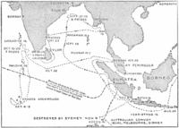 Shortly after the outbreak of the war, the German East Asia Squadron left its base in Tsingtao, China. The squadron headed east for Germany, but one ship, the light cruiser SMS Emden under Lt. Commander Karl von Müller was sent on a solitary raiding mission.[3]