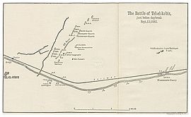 At around the same time as the first battle at Kassassin, the British scored a major success with the capture of the Egyptian chief military engineer, General Mahmoud Fehmy.[11] The exact circumstances of his capture are unclear - according to one account, he had changed into civilian clothes due to the heat, and had gone for a walk accompanied by only one other officer when he was ambushed by a group of British cavalrymen.[12] The loss of Fehmy was "a blow to the defence of Tel-el-Kebir for which there was no remedy", for the highly-regarded General had only recently arrived to oversee the construction of fortifications at the site.[13]
