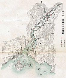 The Battle of the Yalu River (Amnok River) lasted from 30 April to 1 May 1904, and was the first major land battle during the Russo-Japanese War. It was fought near Wiju (modern village of Sinuiju, North Korea) on the lower reaches of the Yalu River, on the border between Korea and China.