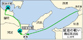 On the 18th, a Minamoto force tried to cross the sea but many of the boats were damaged in a storm. Kajiwara Kagetoki then suggested adding "reverse oars" to the boats, which prompted an argument from Minamoto no Yoshitsune. Finally after the boats were repaired and despite the high winds, Yoshitsune departed with only five of the 200 boats carrying about 150 of his men. After arriving in Tsubaki Bay, in Awa Province. Yoshitsune then advanced into Sanuki Province through the night reaching the bay with the Imperial Palace at Yashima, and the houses in Mure and Takamatsu.[3]
