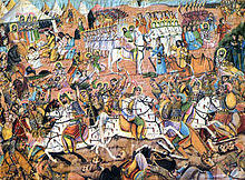 Mukhtar was an early settler of Kufa, having arrived in Iraq following its initial conquest by the Muslims.[69] He had participated in the failed rebellion of Muslim ibn Aqil, for which he was imprisoned by Ibn Ziyad, before being released after the intervention of Abd Allah ibn Umar. Mukhtar then went to Mecca and had a short-lived alliance with Ibn al-Zubayr. After Yazid's death, he returned to Kufa where he advocated revenge against Husayn's killers and the establishment of an Alid caliphate in the name of Husayn's half-brother Muhammad ibn al-Hanafiyya, and declared himself his representative.[70] The defeat of the Tawwabin left the leadership of the Kufan pro-Alids in his hands. In October 685, Mukhtar and his supporters, a significant of number of whom consisted of local converts (mawali), overthrew Ibn al-Zubayr's governor and seized Kufa. His control extended to most of Iraq and parts of northwestern Iran.[71] His attitude towards mawali, whom he awarded many favors and equal status with Arabs, provoked a rebellion by the dissatisfied Arab aristocracy. After crushing the rebellion, Mukhtar executed Kufans involved in the killing of Husayn, including Ibn Sa'd and Shemr, while thousands of people fled to Basra.[72] He then sent his general Ibrahim ibn al-Ashtar to fight an approaching Umayyad army, led by Ibn Ziyad, which had been sent to reconquer the province. The Umayyad army was routed at the Battle of Khazir in August 686 and Ibn Ziyad was slain.[73] Meanwhile, Mukhtar's relations with Ibn al-Zubayr worsened and Kufan refugees in Basra persuaded Mus'ab ibn al-Zubayr, the governor of the city and younger brother of Abd Allah ibn al-Zubayr, to attack Kufa. Facing defeat in open battle, Mukhtar and his remaining supporters took refuge in the palace of Kufa and were besieged by Mus'ab. Four months later, in April 687, Mukhtar was killed while some 6,000–8,000 of his supporters were executed.[74] According to Mohsen Zakeri, Mukhtar's attitude towards mawali was one of the reasons behind his failure, as Kufa was not ready for such "revolutionary measures".[75] Mukhtar's supporters survived the collapse of his revolution and evolved into a sect known as the Kaysanites. The Hashimiyya, a splinter group of the Kaysanites, was later taken over by the Abbasids and eventually overthrew the Umayyads in 750.[76]