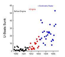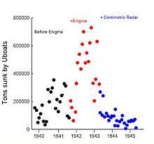 Throughout the summer and autumn of 1941, Enigma intercepts (combined with HF/DF) enabled the British to plot the positions of U-boat patrol lines and route convoys around them. Merchant ship losses dropped by over two-thirds in July 1941, and the losses remained low until November.