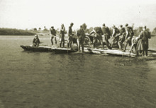 The assault was staged on a 300-kilometer front almost simultaneously. All available means of transport were to be used to transport the attackers to the opposite shore, including small fishing boats and improvised rafts of barrels and trees (like the one in the photograph). The preparation of the crossing equipment was further complicated by the German scorched earth strategy with the total destruction of all boats and raft building material in the area. The crucial issue would obviously be heavy equipment. Without it, the bridgeheads would not stand for long.
