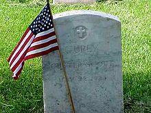 Custer's body was found with two gunshot wounds, one to his left chest and the other to the left temple of his head. Either wound would have been fatal, though he appeared to have bled from only the chest wound; some scholars believe his head wound may have been delivered postmortem. Some Lakota oral histories assert that Custer, having sustained a wound, committed suicide to avoid capture and subsequent torture. This would be inconsistent with his known right-handedness, but that does not rule out assisted suicide (other native accounts note several soldiers committing suicide near the end of the battle).[66] Custer's body was found near the top of Custer Hill, which also came to be known as "Last Stand Hill". There the United States erected a tall memorial obelisk inscribed with the names of the 7th Cavalry's casualties.[65]