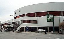 FirstOntario Centre (formerly Copps Coliseum), is a sports and entertainment arena with a capacity of up to 19,000 (depending on event type and configuration) on the corner of Bay Street North and York Boulevard. It was named after the former Hamilton mayor, Victor K. Copps. Construction began in 1983 and was completed in 1985 at a cost of $33.5 million, and an addition $2.3 million for a parking garage. The construction was overseen by local Hamiltonian, Joseph Pigott.[3] In 1987, #99 Wayne Gretzky and #66 Mario Lemieux combined forces to capture the Canada Cup at FirstOntario Centre as Team Canada defeated the Russians. Canada wins series 2 games to one. All three games ended in 6-to-5 scores.[4] In 1999, Detroit Rock City was filmed at the FirstOntario Centre starring the Rock group Kiss. In 2004, FirstOntario Centre was used again to film Meg Ryan's Against the Ropes.