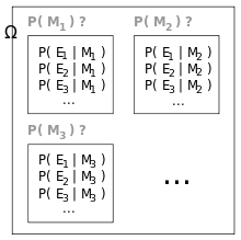 Suppose a process is generating independent and identically distributed events , but the probability distribution is unknown. Let the event space represent the current state of belief for this process. Each model is represented by event . The conditional probabilities are specified to define the models. is the degree of belief in . Before the first inference step, is a set of initial prior probabilities. These must sum to 1, but are otherwise arbitrary.