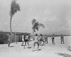 Naturists were early adopters of the game. Records of regular games in clubs can be found as early as the 1920s.[87][88] Given the outdoor nature of naturism, a beach version of volleyball was naturally adopted. By the 1960s, a volleyball court could be found in almost all naturist clubs.[89] A large (over 70 teams) nude volleyball tournament has been held each fall since 1971 at White Thorn Lodge in western Pennsylvania,[90] and several smaller tournaments occur each year throughout North America.[91]