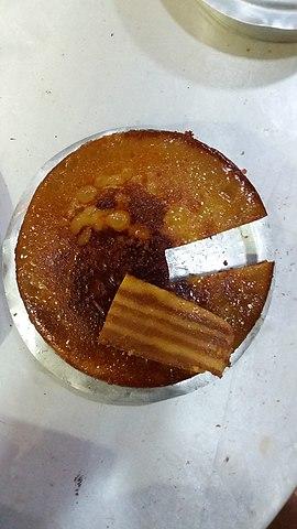 Bebinca, also known as bibik or bebinka, is a traditional layer cake of Goa, India derived from Indo-Portuguese cuisine. Traditionally, Bebinka has between 7 and 16 layers, but it can be modified per one's convenience and taste.[1] [2]It is especially popular during Christmas, but is available in Goa year round due to tourist demand.[3] [4] It is also easily available to carry and preserve for a long time or eaten fresh.