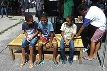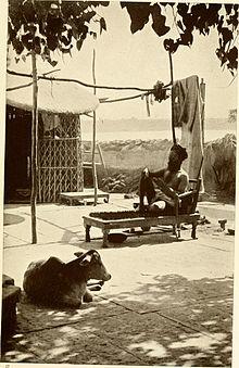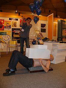 A bed of nails is an oblong piece of wood, the size of a bed, with nails pointing upwards out of it.[1] It appears to the spectator that anyone lying on this "bed" would be injured by the nails, but this is not so. Assuming the nails are numerous enough, the weight is distributed among them so that the pressure exerted by each nail is not enough to puncture the person's skin.[2]
