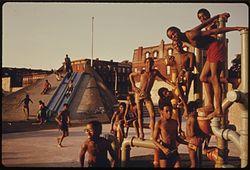 Gang wars erupted in 1961 in Bedford–Stuyvesant, and Alfred E. Clark of The New York Times referred to it as "Brooklyn's Little Harlem."[16] One of the first urban riots of the era took place there due to social and racial divisions in the city contributed to the tensions. Race riots between the NYPD and the city's black community were strained due to perceptions of the NYPD as being oppressive and racially biased, and at that time, few black policemen were present on the force.[17] Predominantly black neighborhoods received disproportionate rates of arrests and prosecutions for drug-related crimes, and the NYPD's 79th Precinct in Bedford–Stuyvesant was one of the only three police precincts in the NYPD where black police officers were allowed to patrol.[18] Race riots followed in 1967 and 1968, as part of the political and racial tensions in the United States of the era, aggravated by continued high unemployment among blacks, continued de facto segregation in housing, and the failure to enforce civil rights laws.