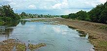 Beed is situated on the Deccan Plateau, on the banks of the Bensura river (also called Bendsura or Bindusara). Bensura is a sub-tributary of Godavari river originating in the hills of Balaghat range, about 30 km south-west of Beed near the village of Waghira. The river divides the city into smaller eastern and larger western parts. Balaghat Range stretches very close, up to 10 km south of the city resulting in undulating terrain in the eastern part of the city. Soil is coarse and rocky largely consisting of basalt. Thin layers of fertile black soil are also seen in the northern part of the city. Bensura is a rapid and seasonal river. Bendsura Project (capacity 7.106 mm3) was constructed on the river in 1955 near the village Pāli, about 10 km south of the city.[14] At some places in the city, the river is narrow and looks like a stream. The river has slop due to undulating terrain which contributes to violent floods when it rains heavy. Floods have repeatedly caused substantial loss of property and life in the history of the city, most recently on 23 July 1989 when a massive flooding of three habitations in the city caused a number of dead or missing and property losses of millions of rupees.[4] Beed falls under Seismic Hazard Zone-III in India according to the new seismic hazard map updated in 2000 by the Bureau of Indian Standards. The city was under Zone-I prior to this update.[15] Beed is 400 km from Mumbai.