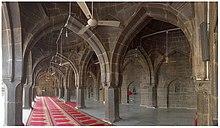 The Jama Masjid (Grand Mosque) is a Masjid situated in the centre of the city at Quila (fort) and is one of the largest Masjids of Beed city. It was built during the period of Mughal emperor Jahāngīr (1605–27) by his official in Beed Jān Sipār Khan in 1627 (1036 Islamic Year).[4] Constructed completely in stone, it has ten huge domes and four minarets. All the domes are having different designs from inside and does not match with each other.