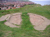 The concrete remains of part of this facility can still be seen on the summit of the hill: the octagonal concrete base measures 3.85 m (13 feet) across, with a channel running west to east across the middle. On the southern edge of the octagon is a raised area of concrete, which is 225 mm (9 inches) higher than the rest of the base. Around the edge of the octagon are the remnants of a reinforced parapet, which has long been removed. There are also signs of a Fletton brick wall running westward away from the raised area. The octagonal shape of the base indicates that a direction-finding station operator's hut stood there. It would have consisted of a double-skinned wooden structure in which the cavity was filled with shingle designed to make them "splinter proof" or "bulletproof". Two Y stations were operated in Sheringham in World War II, one by the RAF and the other by the Royal Navy.