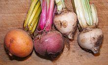 A selection of differently colored beetroot varieties