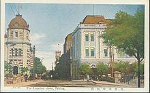 In the late 19th century the eleven foreign delegations were scattered among modest Chinese houses and opulent palaces inhabited by Manchu princes. However, in 1860, Peking was "in a wretched state of dilapidation and ruin, and scarcely one of their palatial buildings is not falling into decay."[7] Legation Street in 1900 was still "a straggling unpaved slum of a thoroughfare, along which one occasionally sees a European picking his way between the ruts and puddles with the donkeys and camels."[8] A number of foreign enterprises in addition to the legations had been established in the quarter, including two large stores catering to Europeans, two foreign banks, the Jardine Matheson trading house, the Imperial Maritime Customs offices, managed by an Englishman, Robert Hart, and the Swiss-run Hotel de Pekin.[9]