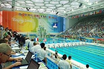The Aquatics Center hosted the swimming, diving, and synchronized swimming events during the Olympics. Water polo was originally planned to be hosted in the venue but was moved to the Ying Tung Natatorium.