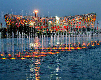 Beijing National Stadium hosted the Opening and Closing Ceremonies, athletic events, and football final of the 2008 Summer Olympics from 8 to 24 August 2008.[3] The stadium also hosted the Opening and Closing ceremonies and athletic events of the 2008 Summer Paralympics from 6 to 17 September 2008.[3] Though designed for track & field events of the Olympics, the stadium continues to host sporting events, such as football, afterwards.[12] A shopping mall and a hotel, with rooms overlooking the field, are planned to help increase use after the Olympics.[1] Li stated, "This will become the most important public space in Beijing."[1]