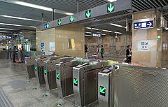 Passengers must insert the ticket or scan the card at the gate both before entering and exiting the station. The subway's fare collection gates accept single-ride tickets and the Yikatong fare card. Passengers can purchase tickets and add credit to Yikatong card at ticket counters or vending machines in every station. The Yikatong, also known as Beijing Municipal Administration & Communication Card (BMAC), is an integrated circuit card that stores credit for the subway, urban and suburban buses and e-money for other purchases.[14] The Yikatong card itself must be purchased at the ticket counter. To enter a station, the Yikatong card must have a minimum balance of ¥3.00.[15]