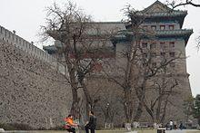 Historical records indicate that when Li Zicheng retreated from the city in 1644, he ordered that the Ming Imperial palace complex and the major city gates be set afire.[4] But in 1960, when the walls were finally dismantled, the workers realized that the Dongzhimen and Chongwenmen towers and gate sections were the Ming originals.[2]