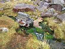 The Triple Buttress Corrie was the scene of an aviation tragedy on the night of 13-14 March 1951. An Avro Lancaster crashed about 5 m below the crest of the summit ridge in a gully now known as Fuselage Gulley (or Far West Gulley) above Loch Coire Mhic Fhearchair. The aircraft, which was part of 120 Squadron, had taken off from RAF Kinloss around 6 pm for a maritime reconnaissance mission in the vicinity of Rockall and the Faroe Isles, and was due back at around 2:30 am. During the return journey the weather conditions were poor, with freezing temperatures and a strong north-easterly wind.[26]