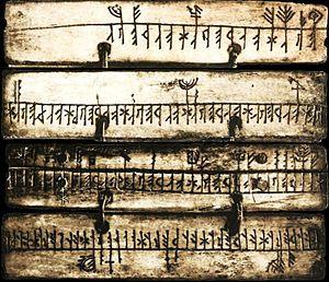 On one line, 52 weeks of 7 days were laid out using 52 repetitions of the first seven runes of the Younger Futhark. The runes corresponding to each weekday varied from year to year.