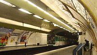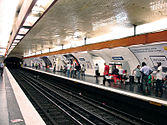 Belleville (French pronunciation: [bɛlvil]) is a station on Paris Métro Line 2 and Line 11. The station is in the district of Belleville at the corner of the 10th, 11th, 19th and 20th arrondissements.
