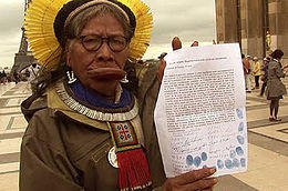 - ^ Instituto Raoni (22 March 2012). "Carta aberta à Presidenta Dilma e à sociedade brasileira" (http://www.raoni.com/atualidade-307.php Archived 2 December 2012 at the Wayback Machine). (in Portuguese). Retrieved 5 May 2012.